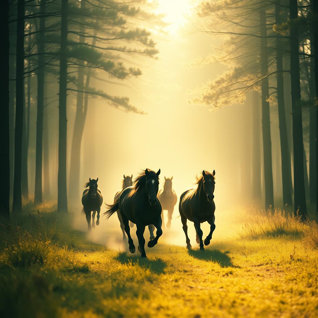 Dust kicks up in the hollar’s glow A winding trail where the rivers flow Hooves drum a beat that the earth can feel Freedom’s touch in the leather and steel [Chorus] Gallop wild let the wind sing loud Through the trees past the drifting clouds Every hoof strike a heartbeat proud Gallop wild gallop free gallop now [Verse 2] The sky wears a robe of endless blue The sun paints gold on the morning dew Tall trees stretch where the mountains rise Mustangs ride in the open skies [Prechorus] We don’t need walls we don’t need maps The world is ours where the bridle taps [Chorus] Gallop wild let the wind sing loud Through the trees past the drifting clouds Every hoof strike a heartbeat proud Gallop wild gallop free gallop now [Bridge] Saddle creaks with a rhythm slow Lantern stars in the night will glow Echoes trail where the wild things go The open land is all we know